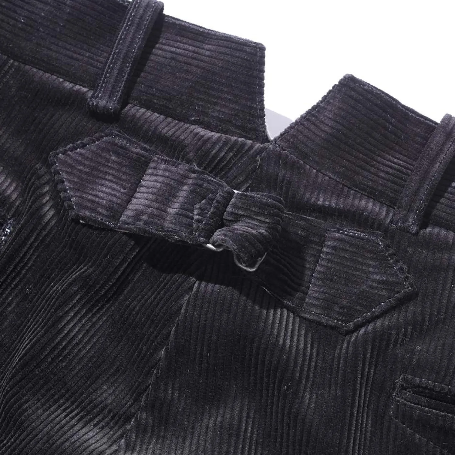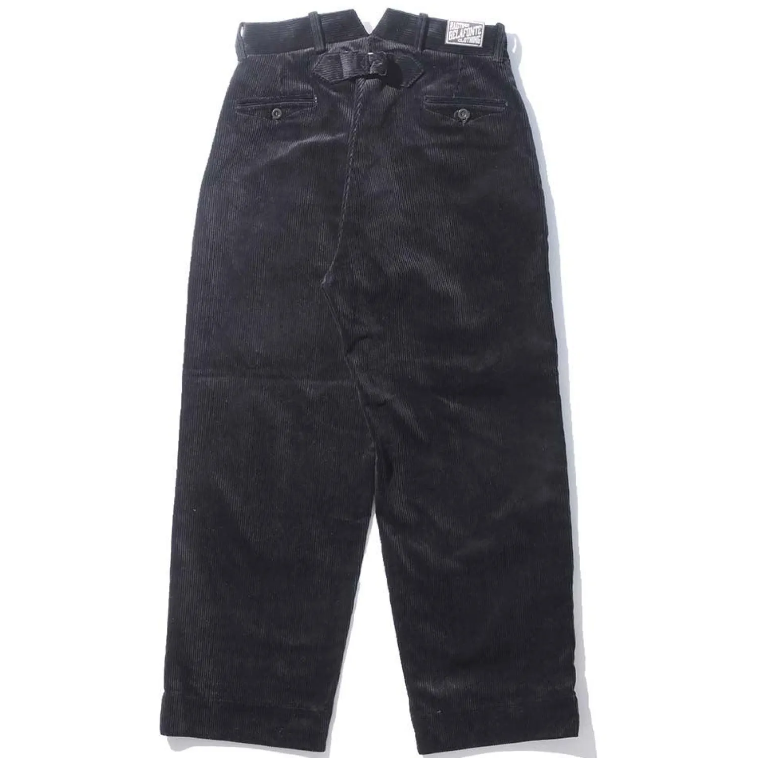 Here we have corduroy Hi Back Trousers. These are an old-school, traditional trouser ubiquitous with Belafonte and heritage, workwear style.