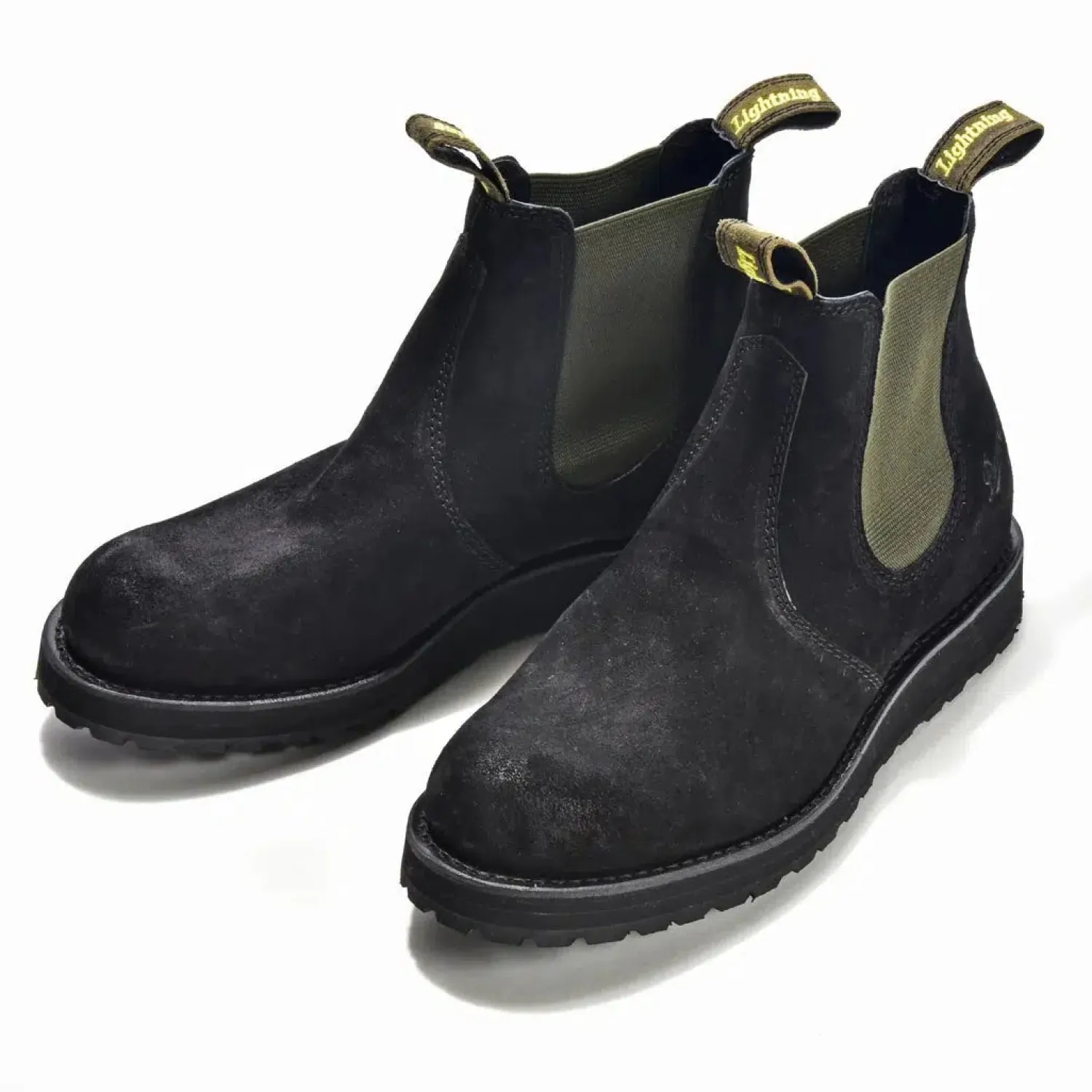 The finishing touches are to the boot include the ‘Danner‘ embossed outer heel, strong duo-colour side gussets with a black inner and olive khaki outer; which also match the double-sided green suede pull-on-straps with the ‘Lightning‘ logo embroidered on both sides.
