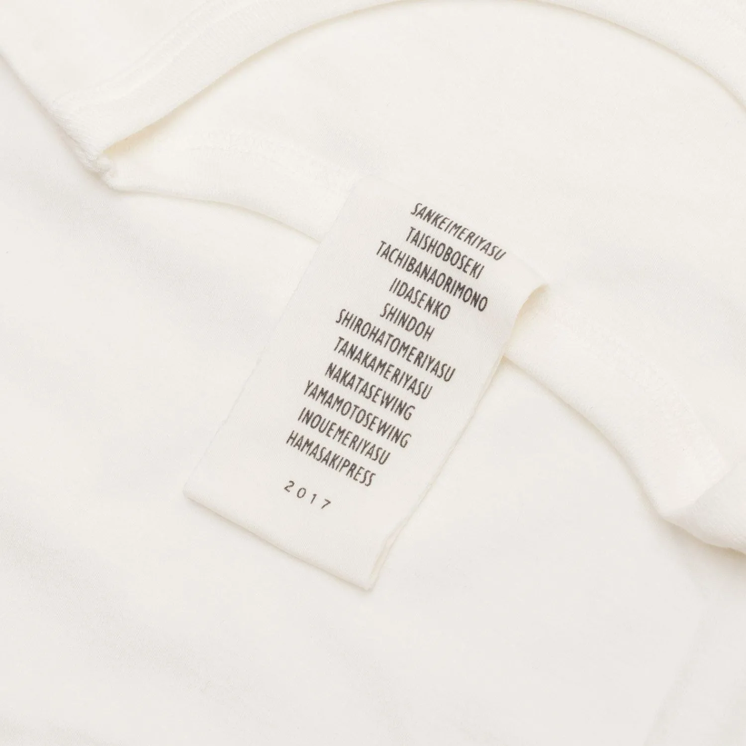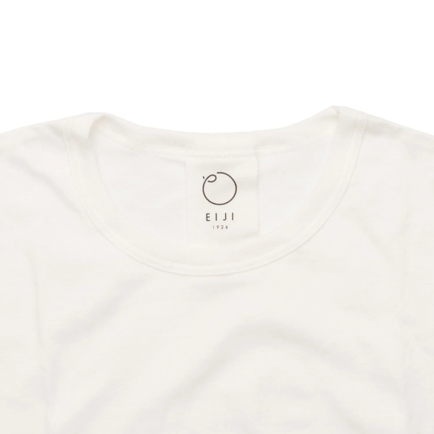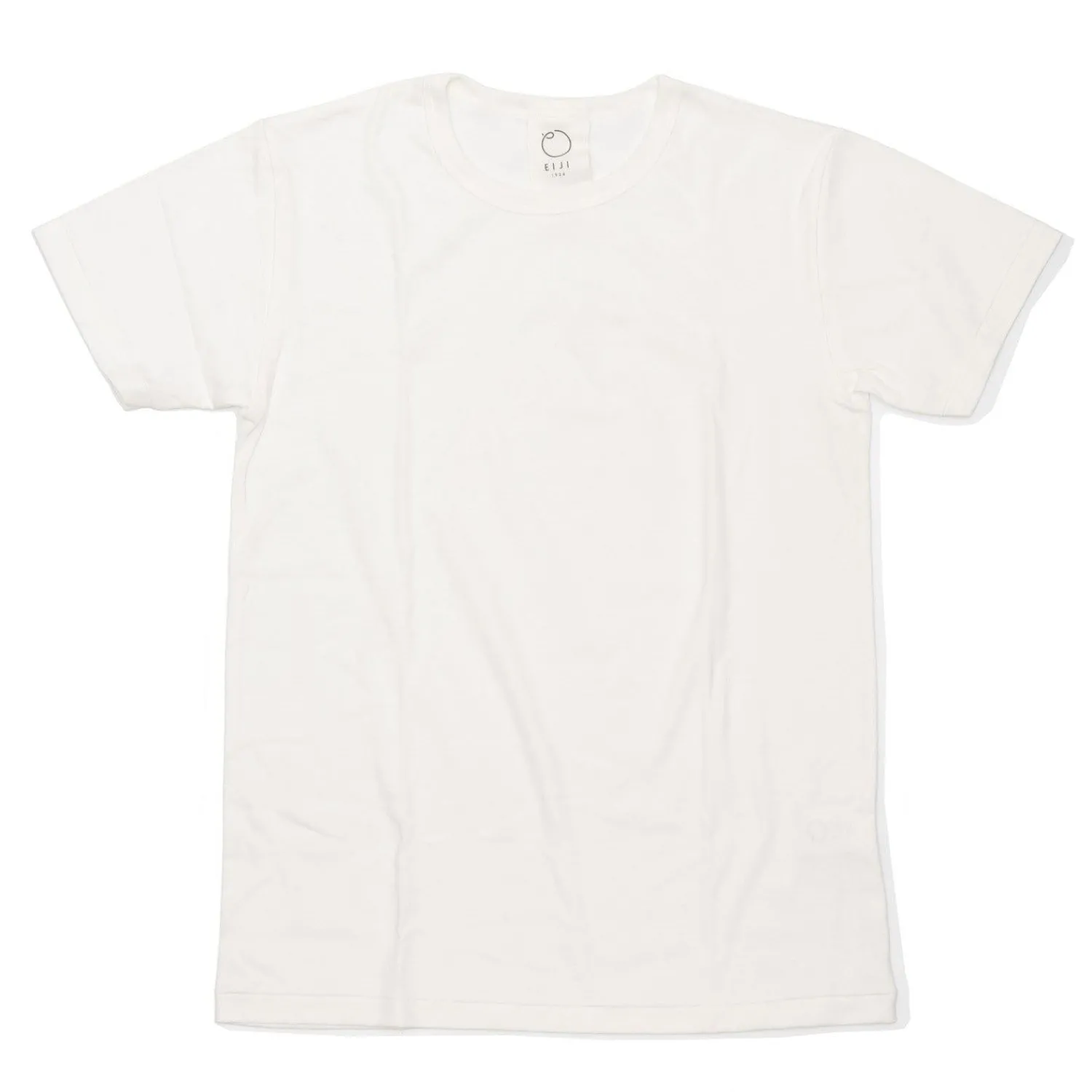 We have produced our order with two subtle side seams as opposed to Eiji’s singular back center seam for a more traditional style with comfortable slim-ribbed crew neck