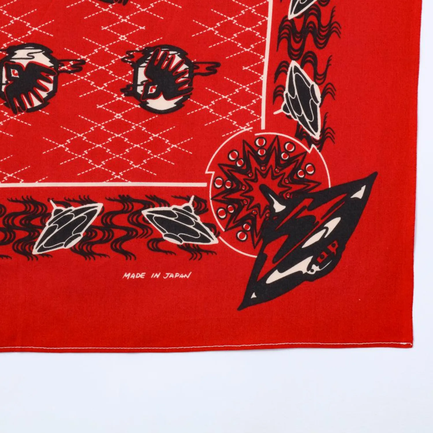 Started by Osaka based Bandana connoisseur, Jonathan Lukacek, the One Ear Brand aims to be much more than just a bandana brand. Using custom made fabrics, One Ear Bandanas are made entirely in Japan, printed one at a time meaning that each is slightly different from the last. Inspired by the big “Turkey Red” bandanas of the 1800’s, these bandanas are designed for more than just accenting an outfit; they make great Eco-Bags, Face Masks, Scarves, Furoshiki (Traditional Japanese Wrapping Cloths), Head Wraps and much more. With the Bandana as her canvas each piece is drawn by one artist, Japanese- American- Yurika Cherise Shikai.