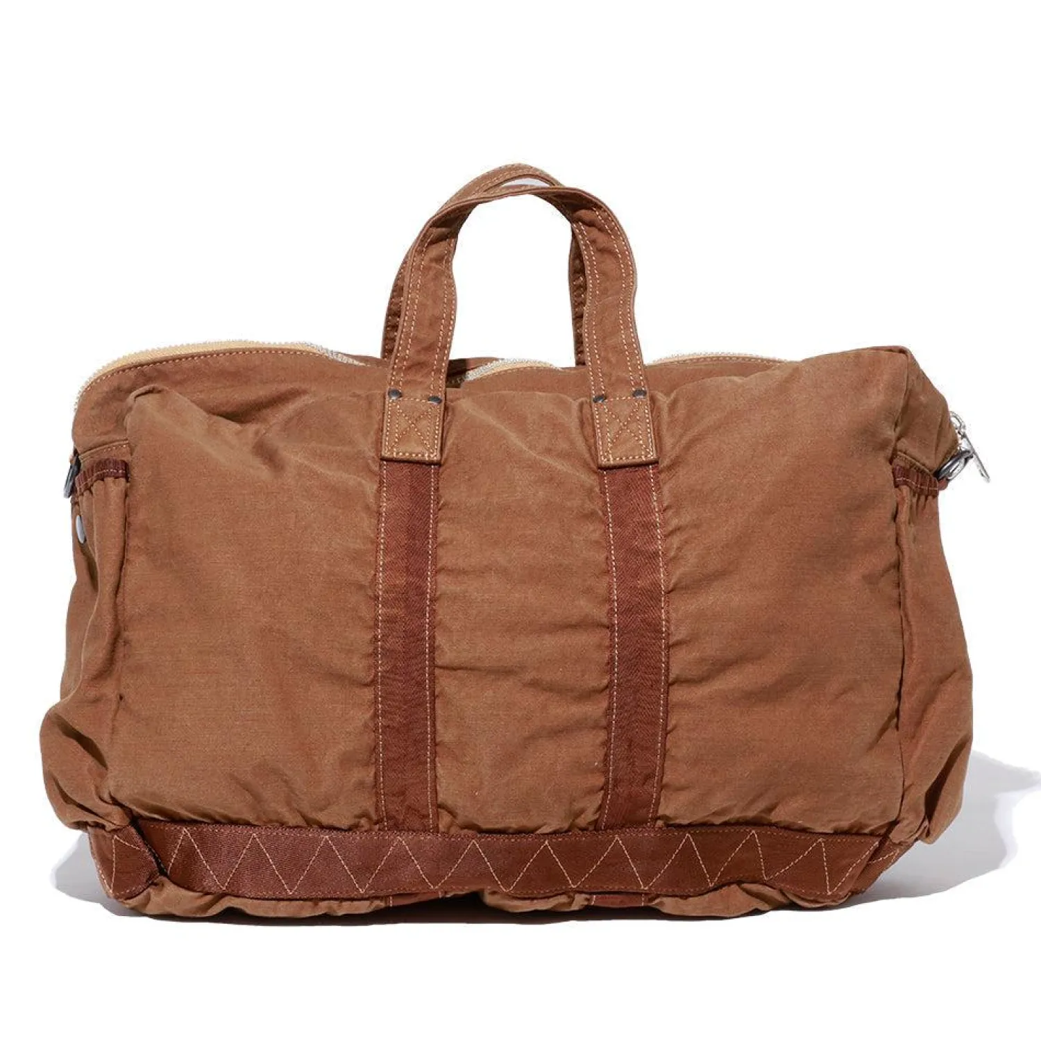 The Boston Bag features nylon webbing throughout and features multiple interior compartments with a zip pocket inside. There are multiple pockets on the front and side for excess carry and storage with snap closure while it can be worn on the shoulder or carried with the top handles.