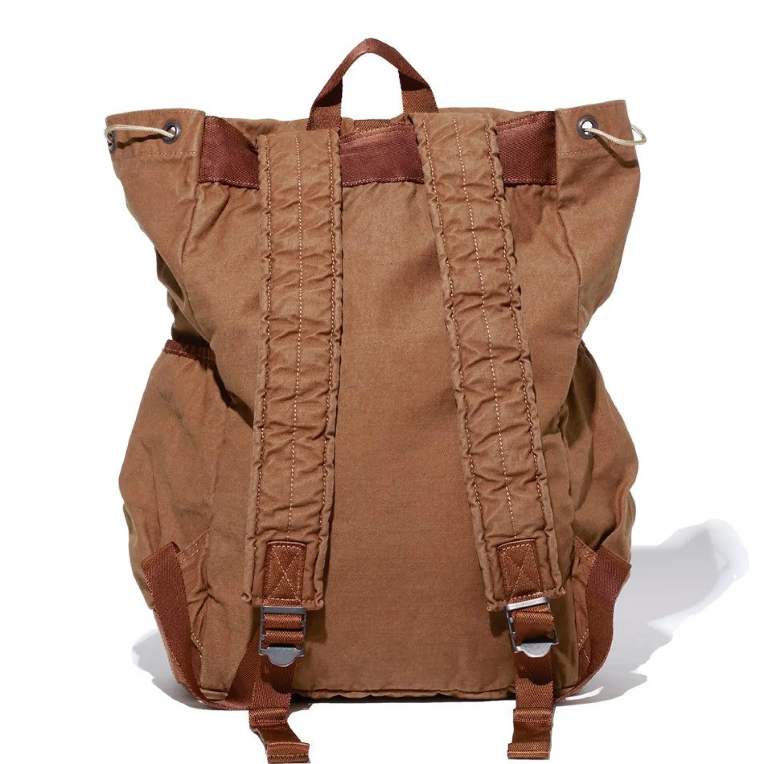 The Rucksack features nylon webbing throughout and features one interior compartment. There are multiple pockets on the front and side for excess carry and storage with drawstring closure.