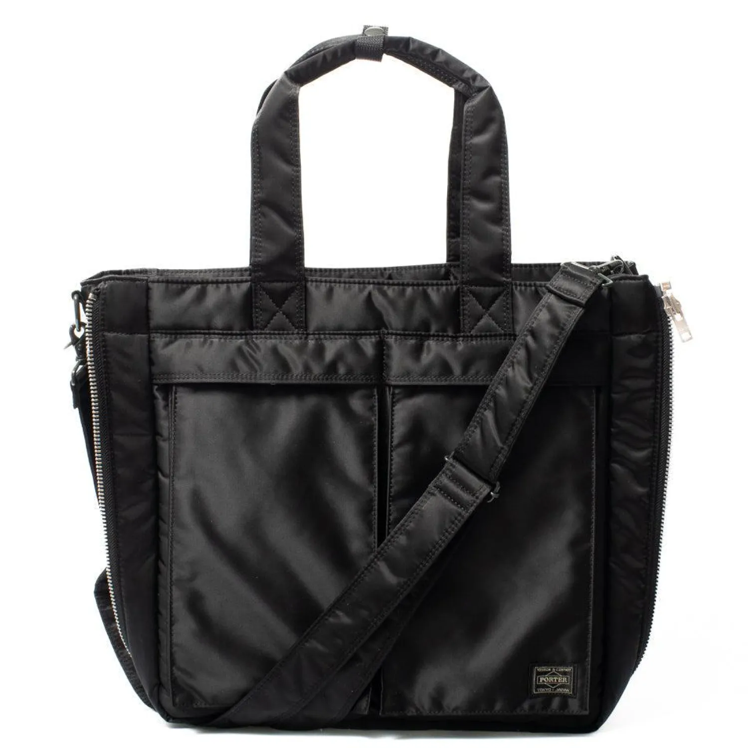 Designed with a utilitarian aspect in mind, the 2Way Tote Bag is fully equipped to meet the standards of everyday life. Cut from Porter Yoshida & Co’s standard durable black shell nylon, the bag is designed with easy access in mind, with two large zipped pockets on the front. Concealed within the interior is a plastic stow away compartment with zip closure as well as an additional storage space. The zip runs along the outside to give additional space once opened, while the Tote Bag is complete with detachable shoulder strap and pressed stud closure.