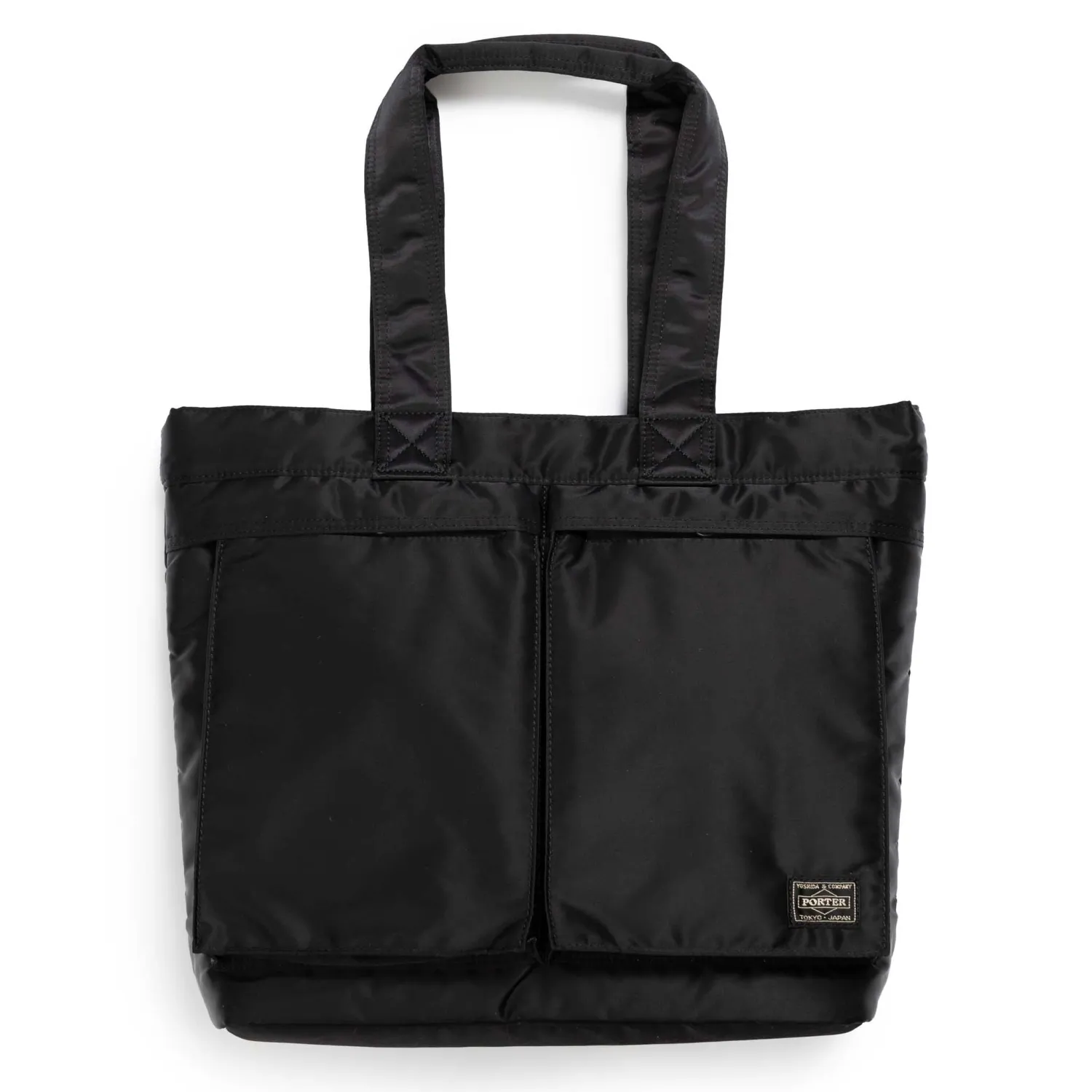 Designed with practicality in mind, the Tote Bag from Porter is a Tanker favourite. Cut in Japan from a nylon shell, with a rescuer orange liner, the Tote Bag features two large pockets to the front with button snap closure while an internal zip closure pocket has been added, together with a matching gold zip closure pocket on the opposite side. A snap closure in the middle brings the bag together while it is finished with two carry handles.