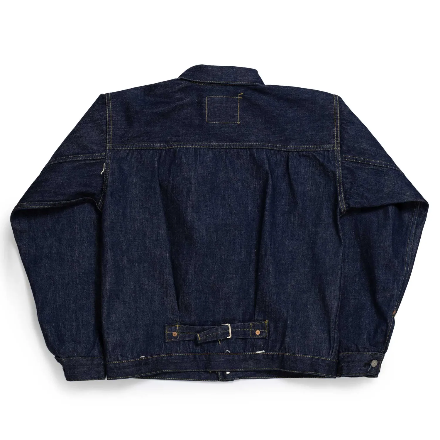 The denim is similar to war-time fabric and captures the colour hue of oxidised indigo and the characteristics of the warp and weft yarn match that of late-war manufacturing. The fabric is from the Nihon Menpu mill in Japan and specifically woven for Sugar Cane under Wakita’s guidance & to his liking (he basically wanted Sugar Cane to reproduce his original jeans & jackets as his vintage pairs are rare and too precious to wear!) They even made a new loom to weave this 1946 fabric to create the imperfections & roughness in the fabric, making the output extremely slow and limited.