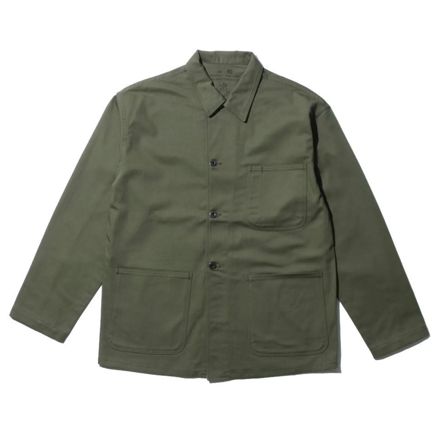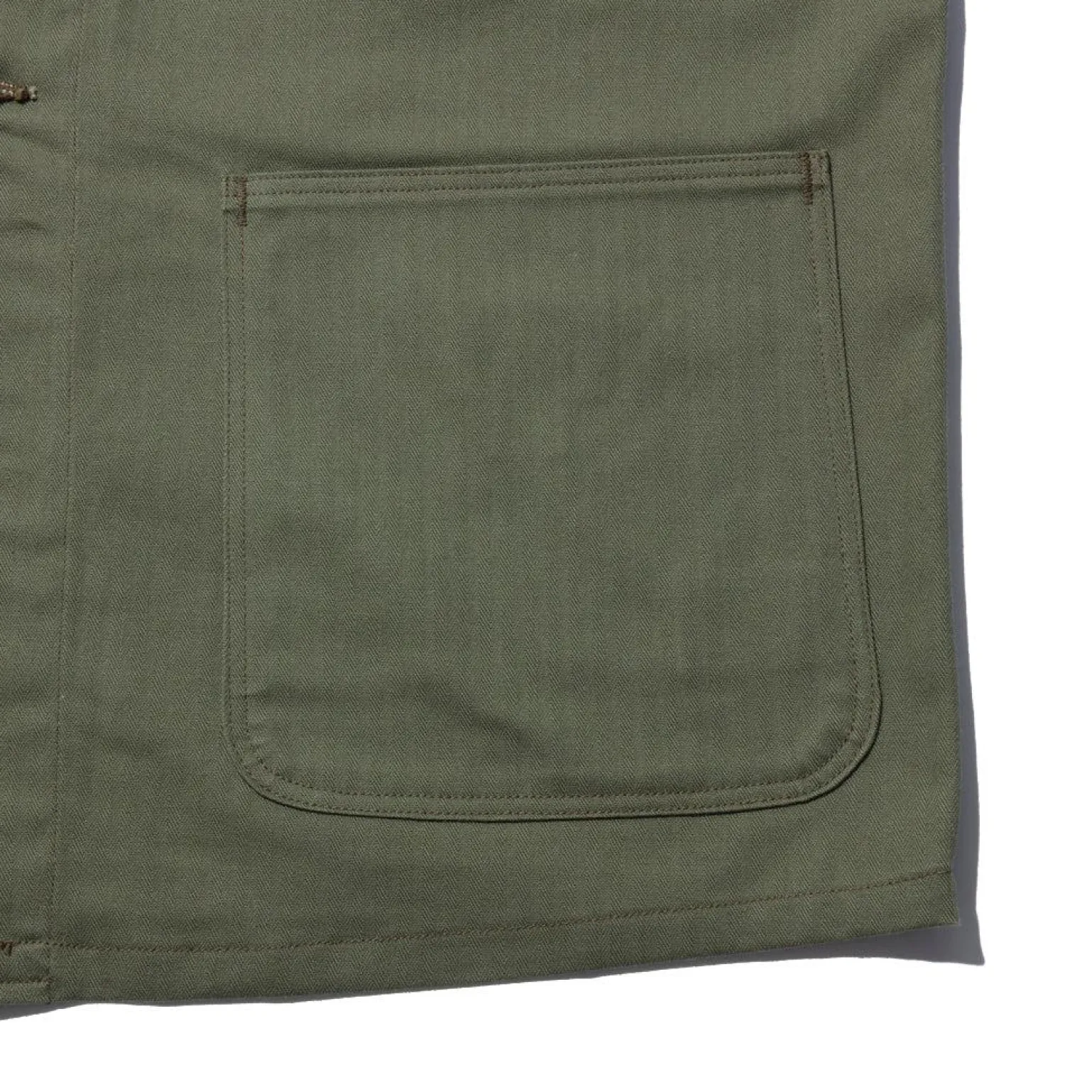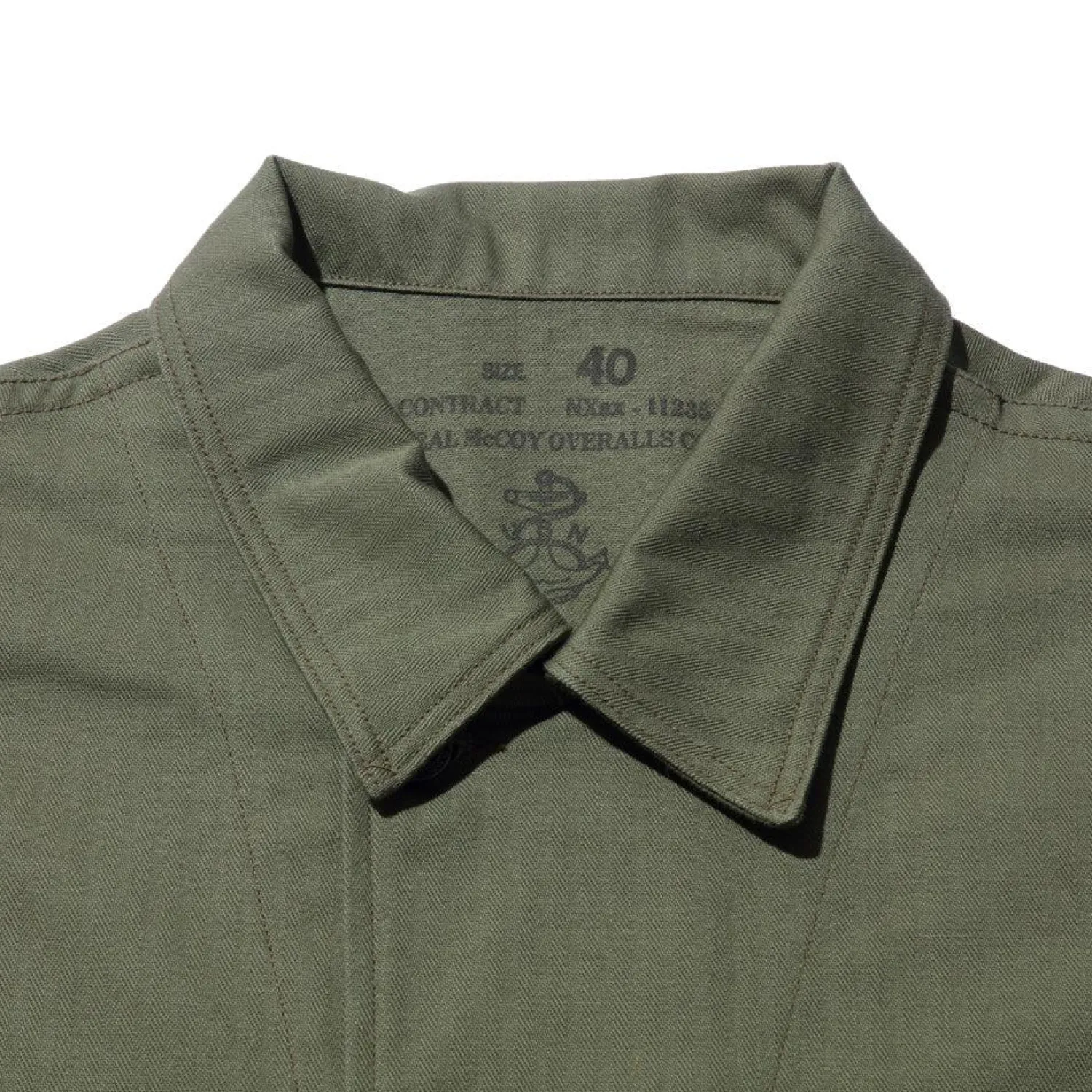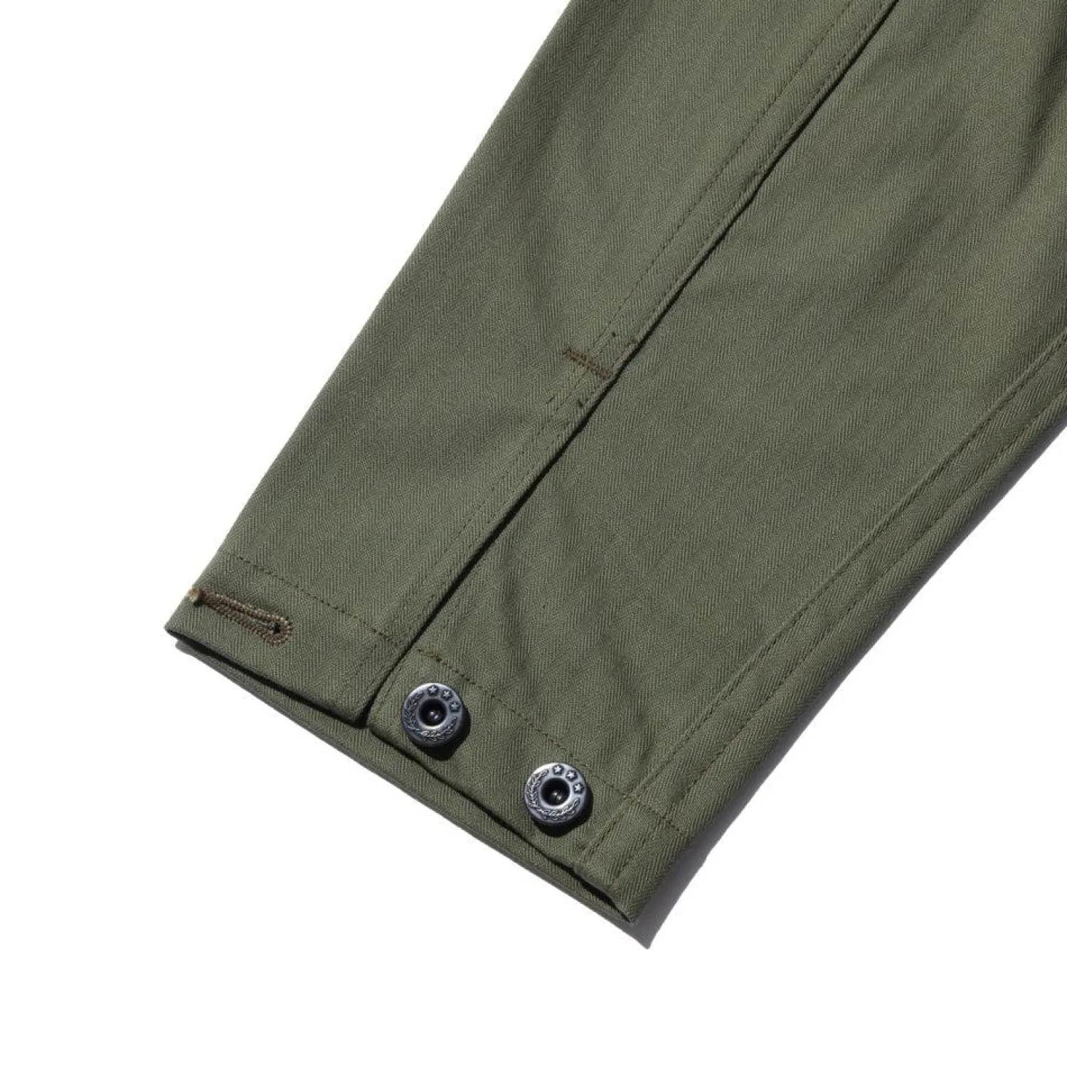 Cut in Japan from 100% cotton, the N-3 Utility Jacket comes in the classic colour-way and a herringbone twill. As a war-time model the button front was changed from five to four and features laurel wreath donut buttons. Two hip pockets have been paired with a single chest pocket while laurel wreath button cuff adjusters aid fit. A stamped USN Real McCoy’s Overall Co and contract no completes the look.