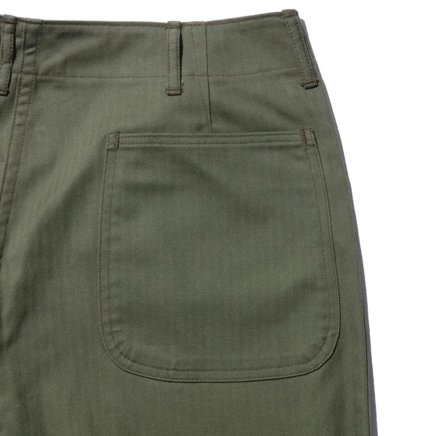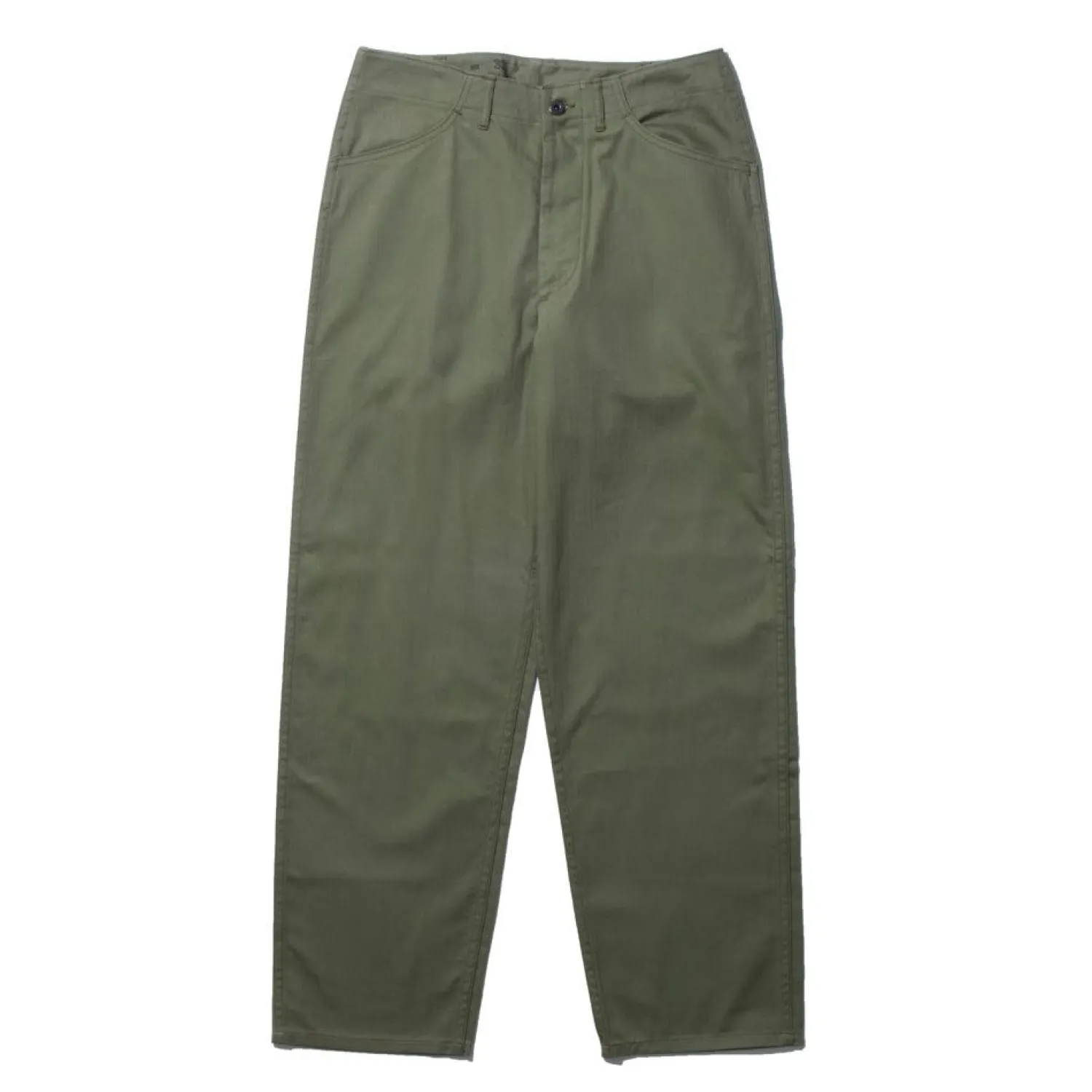 Here we have The Real McCoy’s N-3 Utility Trousers (Model 220), a classic piece of Japanese ‘American Casual’ reproduction clothing. First introduced in the 1940’s as part of 4-piece uniform issued to U.S Navy shore parties and usually cut from a herringbone twill cotton fabric in olive drab colour #7. The ‘N’ was part of clothing identification and contract issue (often seen as NXS) developed by the US Navy.
