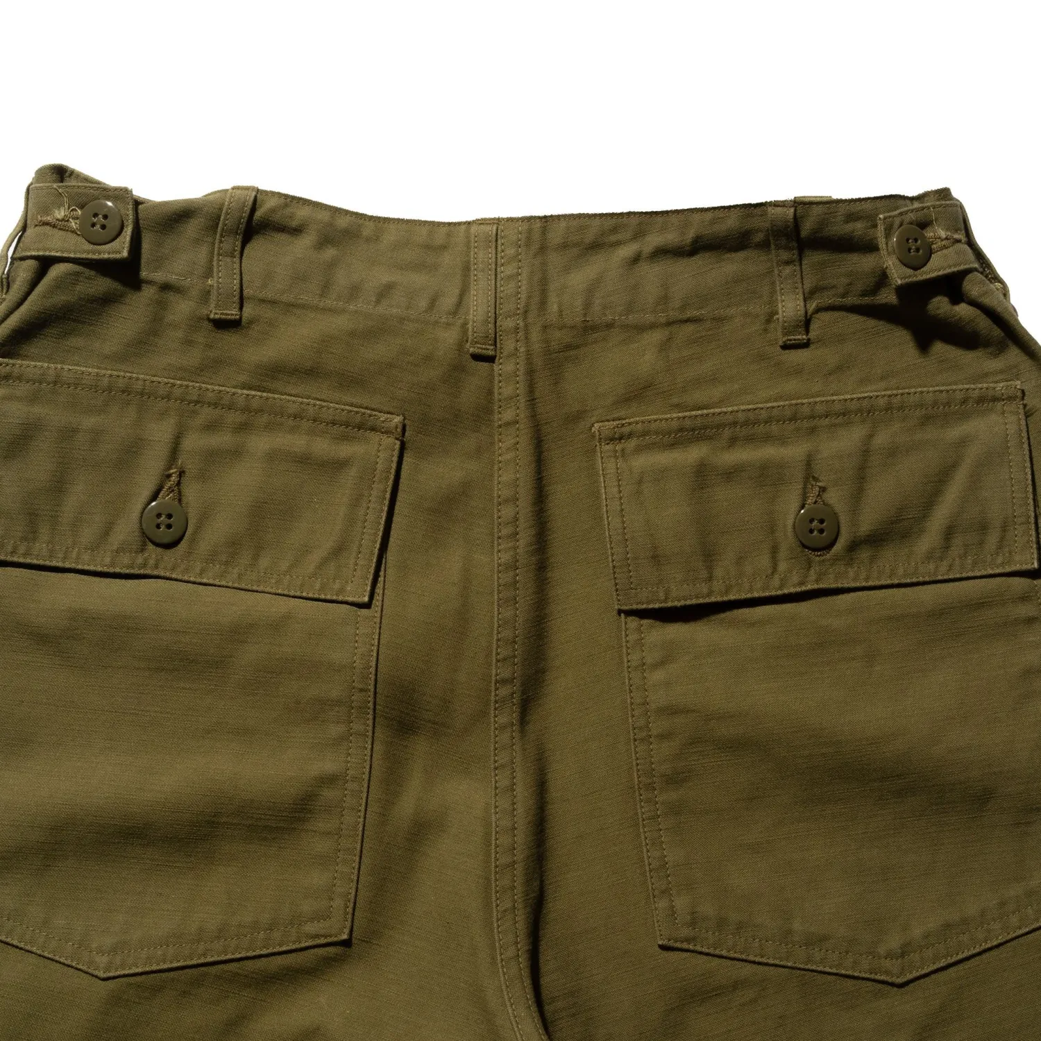 Based on U.S. Army issue shorts these OG 107 shorts from Buzz Rickson’s feature a regular fit, a button fly and belt adjusters on the waist to alter fit if necessary. Two large patch pockets with side entry and two button flap closure pockets on the rear complete the look.