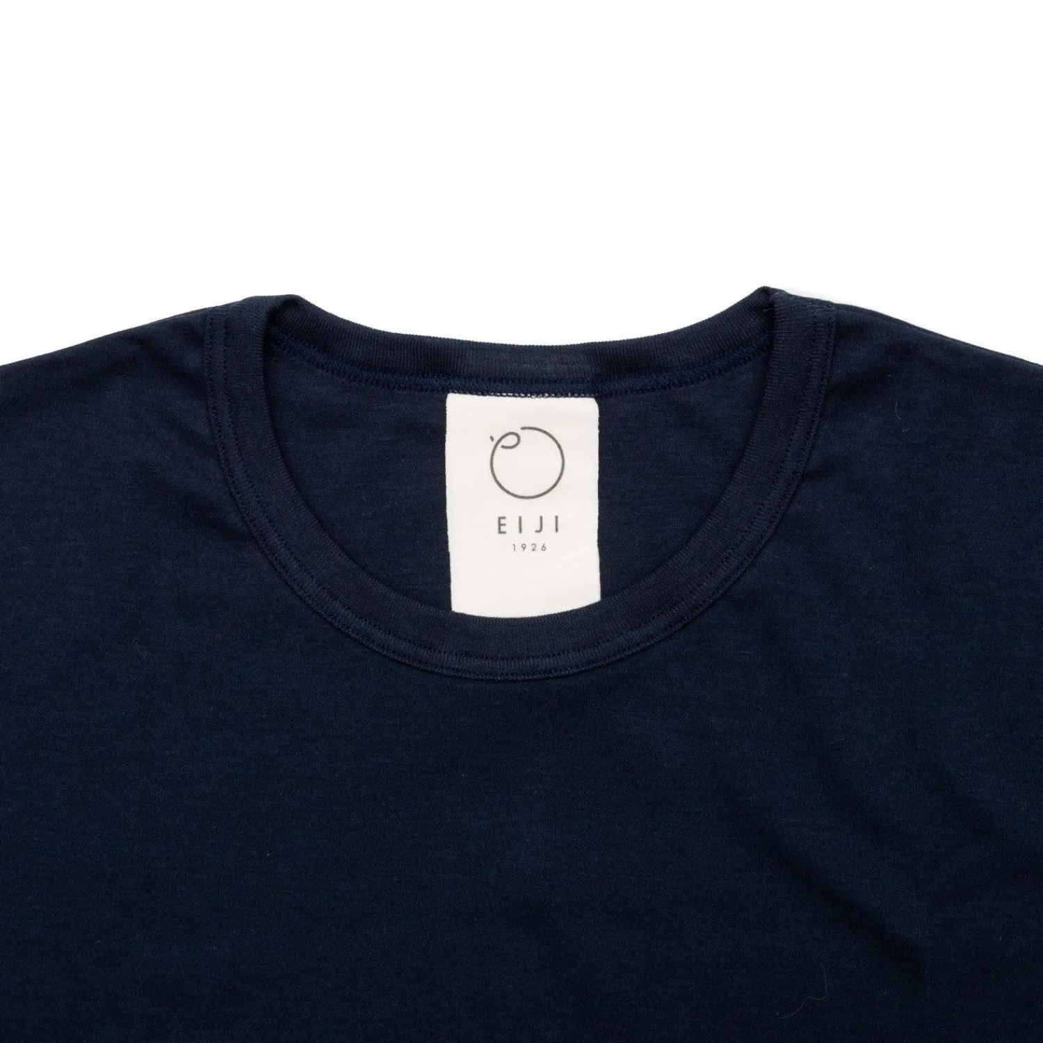 We have produced our order with two subtle side seams as opposed to Eiji’s singular back center seam for a more traditional style with comfortable slim-ribbed crew neck