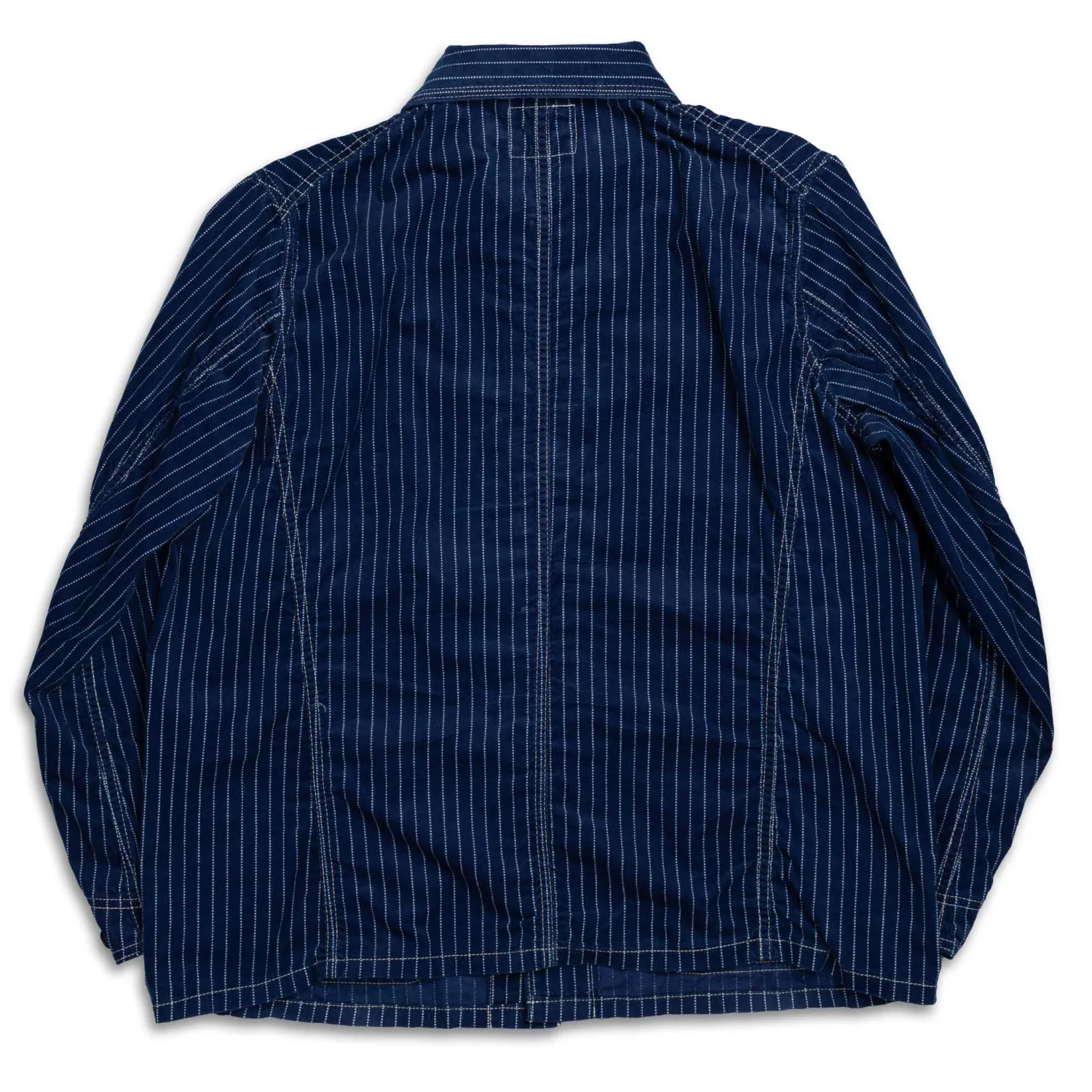 Full Count have paired indigo-dyed corduroy with a classic wabash stripe pattern to elevate this classic piece of utilitarian workwear. Using a discharge dyeing process, where the dotted white stripes are created on top of the indigo-dyed corduroy base.