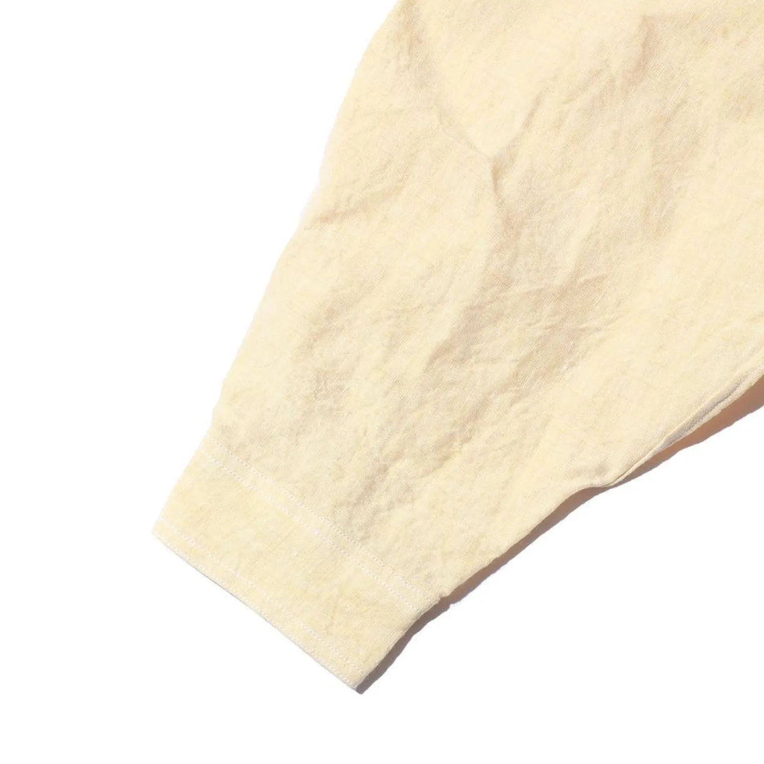 The Dungaree Shirt from Haversack is new for SS24 and has been cut from 100% linen in Japan. The shirt features a band collar with a four button placket, contrasting stitching throughout and one large patch pocket on the left and one large double patch pocket on the right. A curved hem and relaxed fit completes the look.