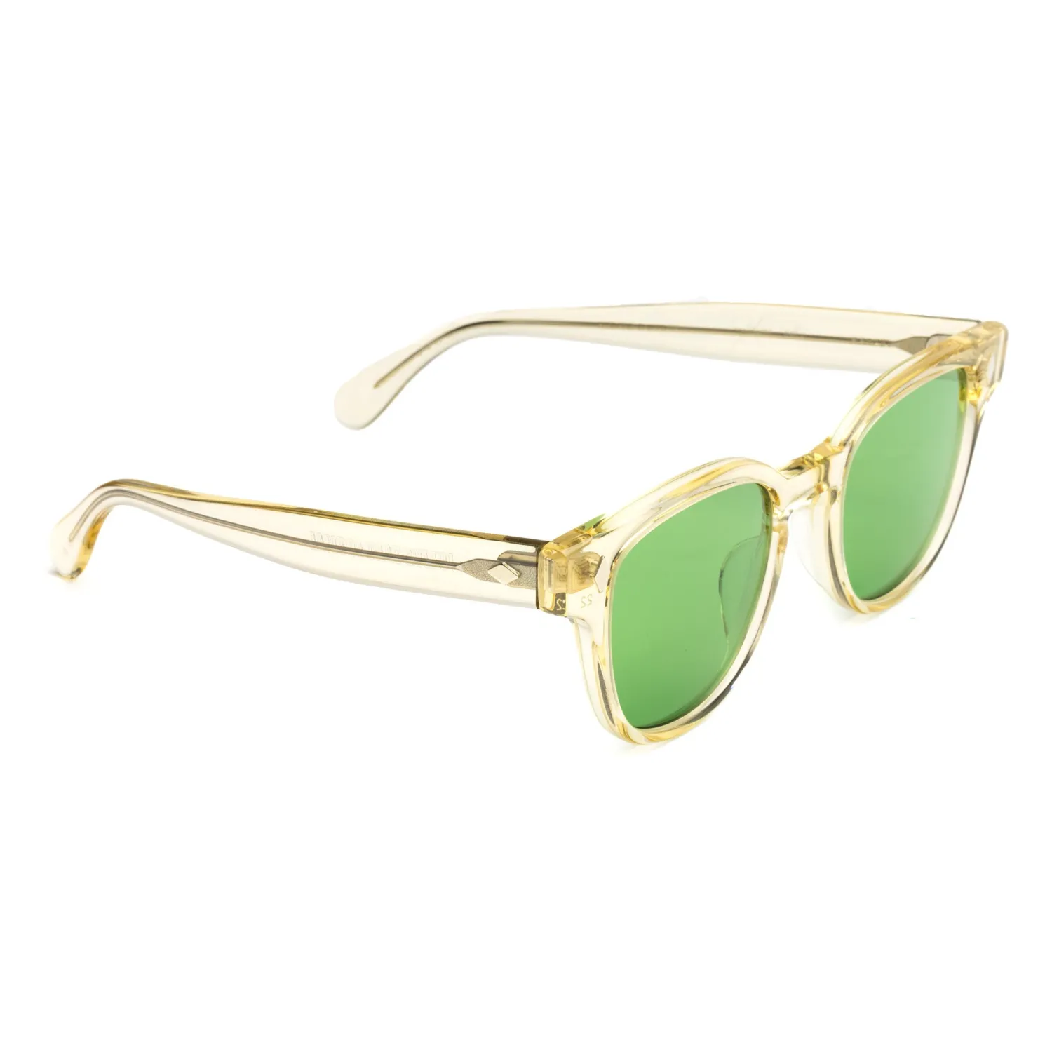 The Bryan shape from Julius Tart is one of their most iconic shapes, featuring a rounded square frame in a cracking champagne colour-way, this style features beveled temples and a distinct keyhole bridge. Handmade in Japan from a cellulose based acetate, the Bryan comes with 100% UV protection lenses and comes complete with official Julius Tart Optical packaging (leather case & cloth).