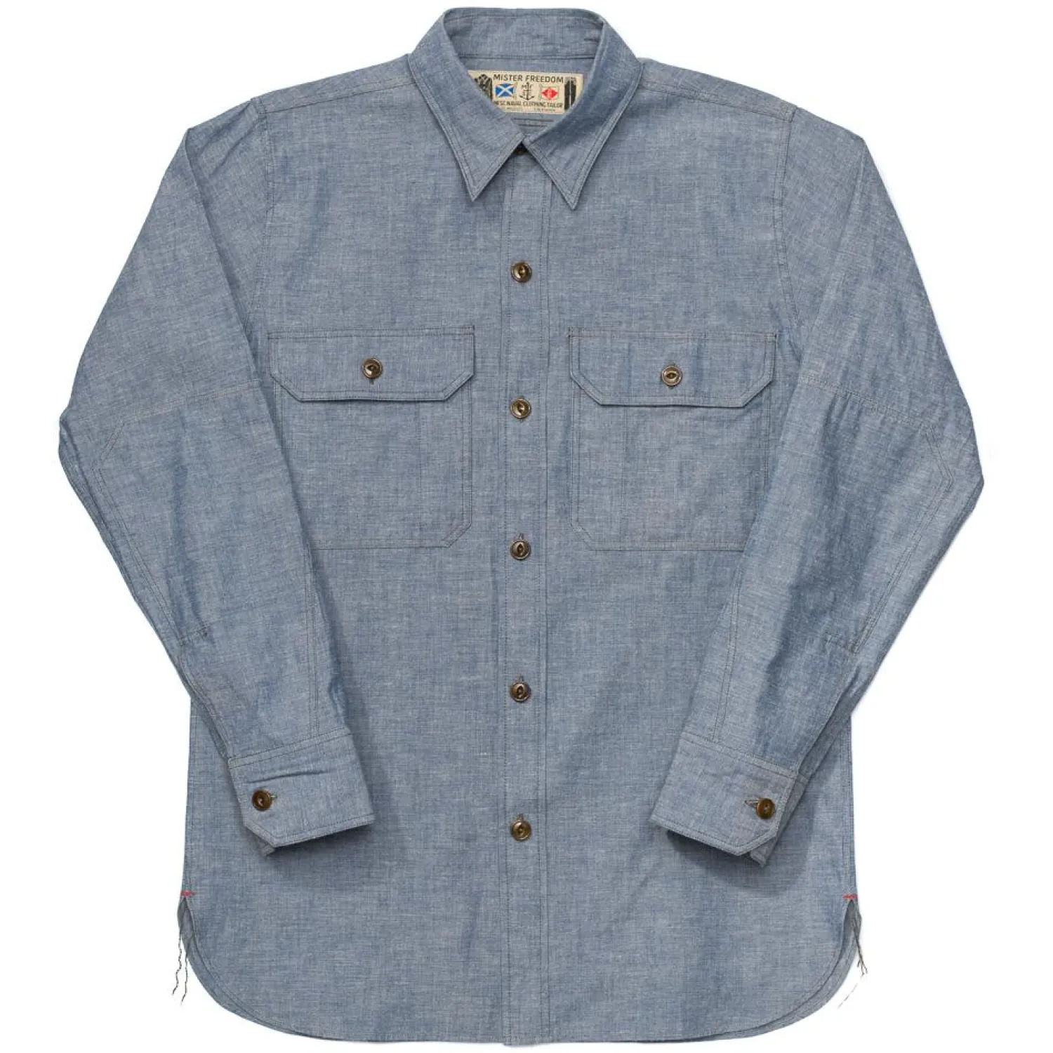The Snipes Chambray Shirt is designed in California by Mister Freedom and manufactured in Japan by Sugar Cane & Co.