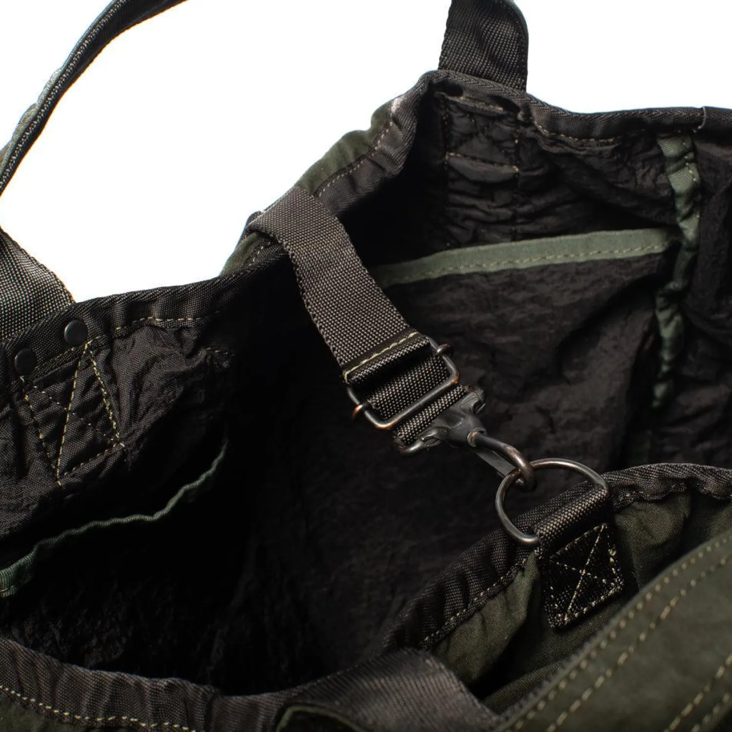 The 2Way Rucksack has been cut from an original back satin, which is a high density weave of cotton and nylon.