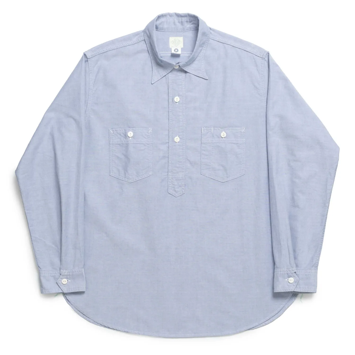 Cut in Japan from a crisp cotton oxford cloth, the shirt features all the detailing found on these pre-1920’s style shirts. A 1/4 button placket has been paired with a regular collar and double throat tab, two symmetrical chest pockets as well as vintage detailing like chain stitch run offs and reinforced gussets. A curved hem & contrasting stitching throughout finishes of this classic style.