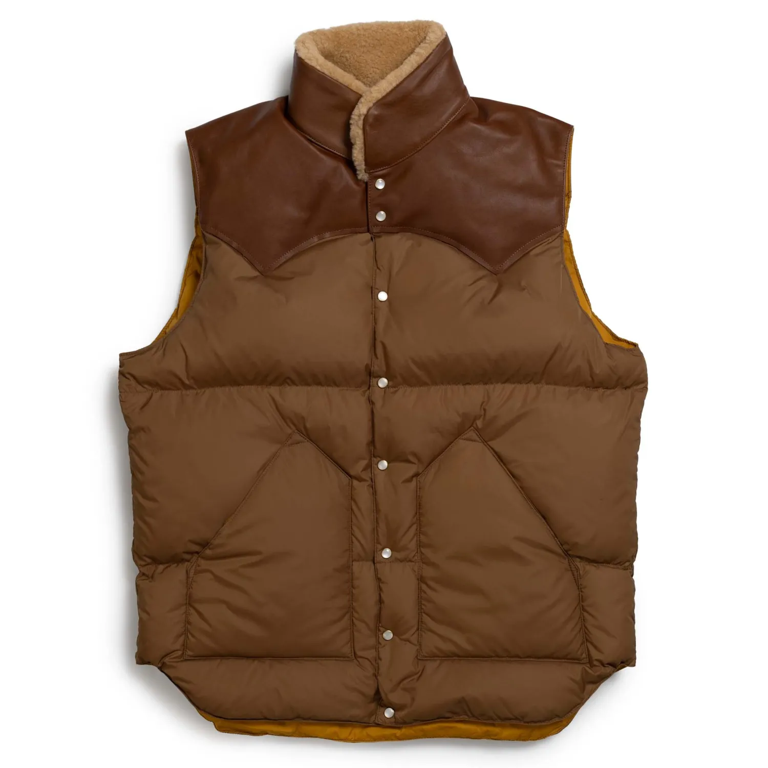 Rocky Mountain Featherbed was founded in Wyoming (the Cowboy State) in the late 1960’s. RMFB created its iconic down vest with a seamless single-piece leather yoke for cowboys and their down vests became infamous for their cold-proof and heat-retaining features like those of feather beds.
