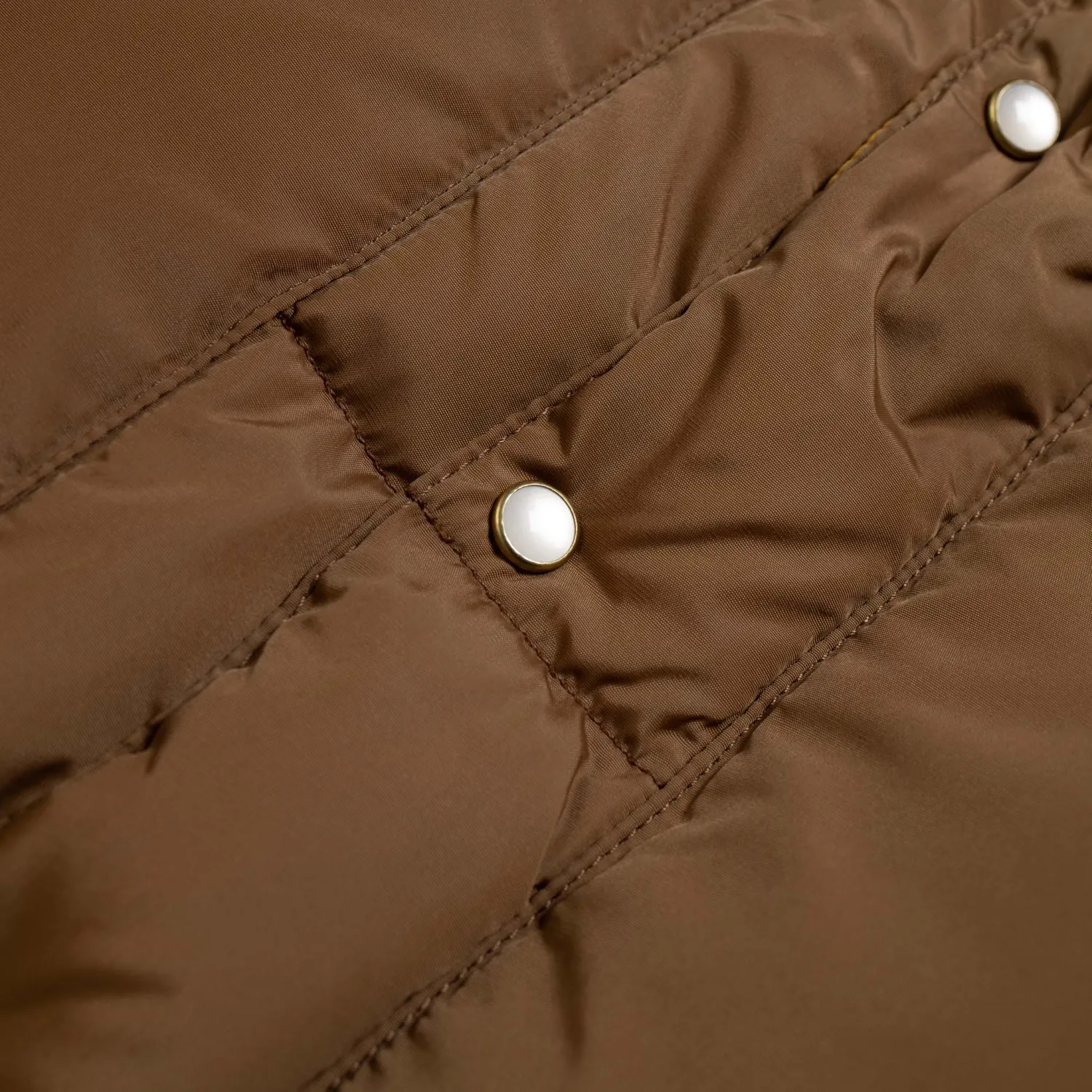 The RMFB Christy Vest is Made in Japan to the same detailing as those commonly found from the 1960’s. A one-piece leather Western yoke across the shoulders and as close to the original ratio of 90/10 Down to Feather filling are two key components researched and carried out successfully by RMFB. The shell is made from a specially created 70 Denier Nylon which is lightweight and incredibly durable.