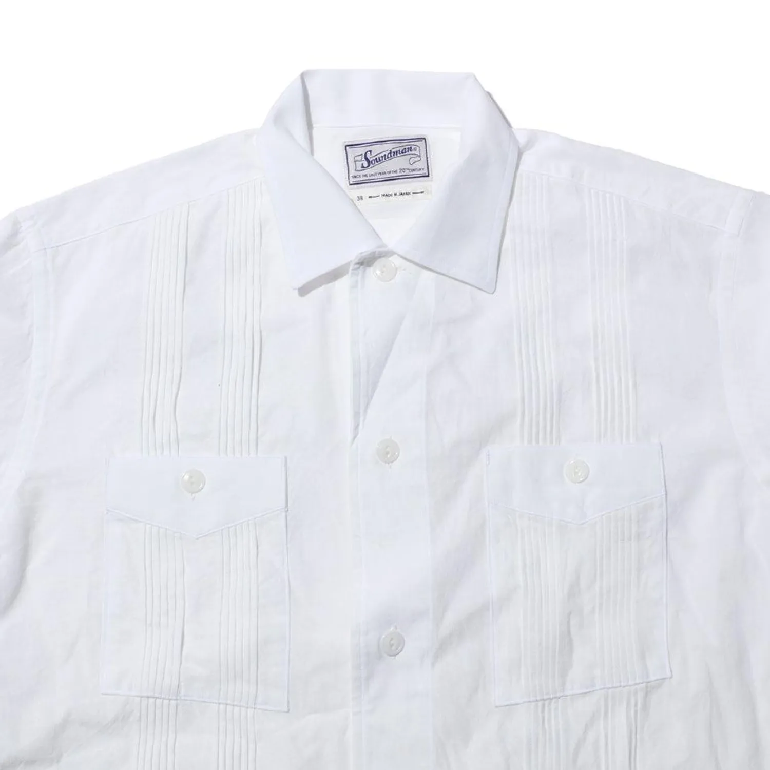 The Havana Shirt from Japanese favourites Soundman is inspired by vintage Cuban, or Guayabera shirts, with roots dating back to the late 19th century. Cuban or Guayabera shirts are typically adorned with 2 or 4 pockets and vertical rows of delicately sewn pleats.