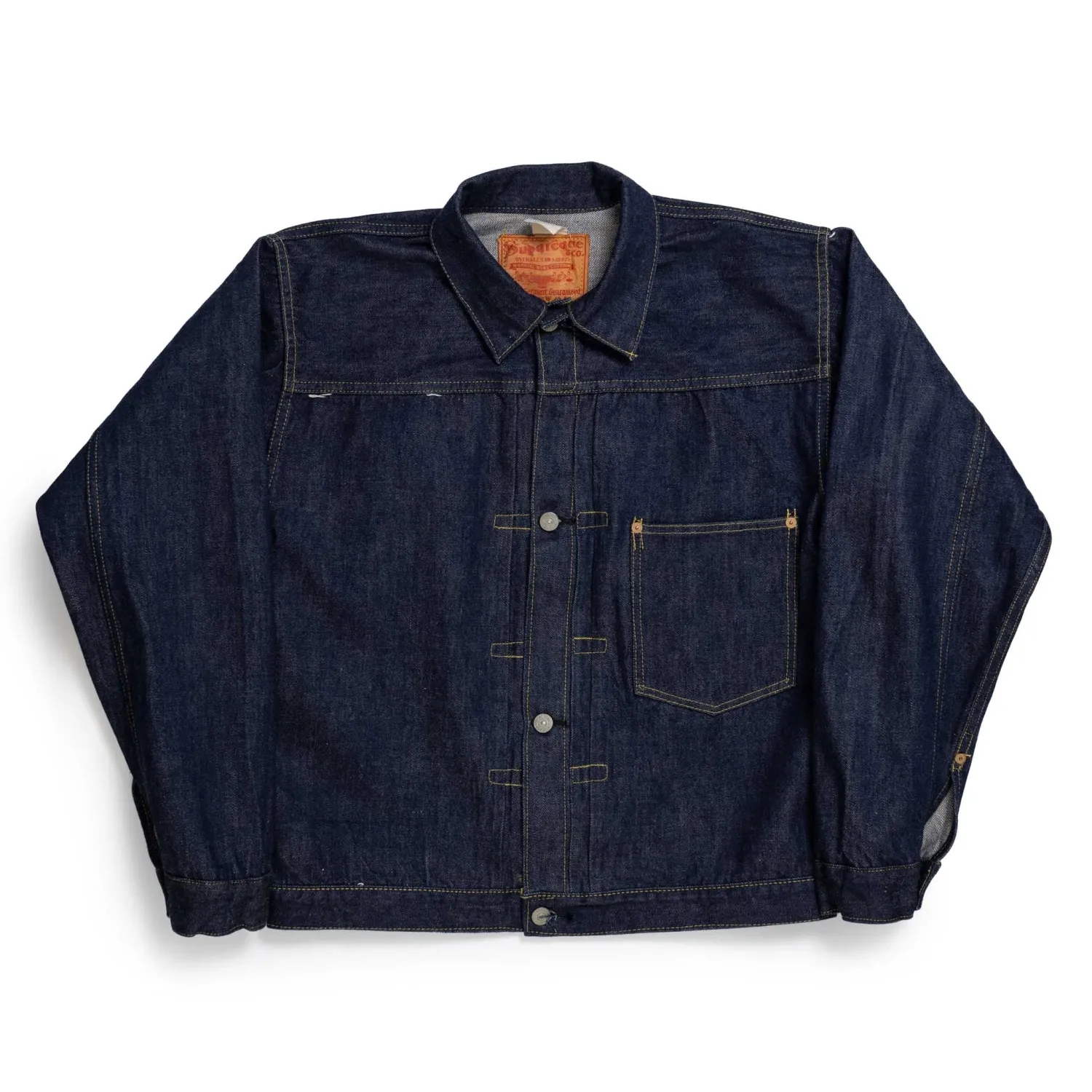 The denim is similar to war-time fabric and captures the colour hue of oxidised indigo and the characteristics of the warp and weft yarn match that of late-war manufacturing. The fabric is from the Nihon Menpu mill in Japan and specifically woven for Sugar Cane under Wakita’s guidance & to his liking (he basically wanted Sugar Cane to reproduce his original jeans & jackets as his vintage pairs are rare and too precious to wear!) They even made a new loom to weave this 1946 fabric to create the imperfections & roughness in the fabric, making the output extremely slow and limited.