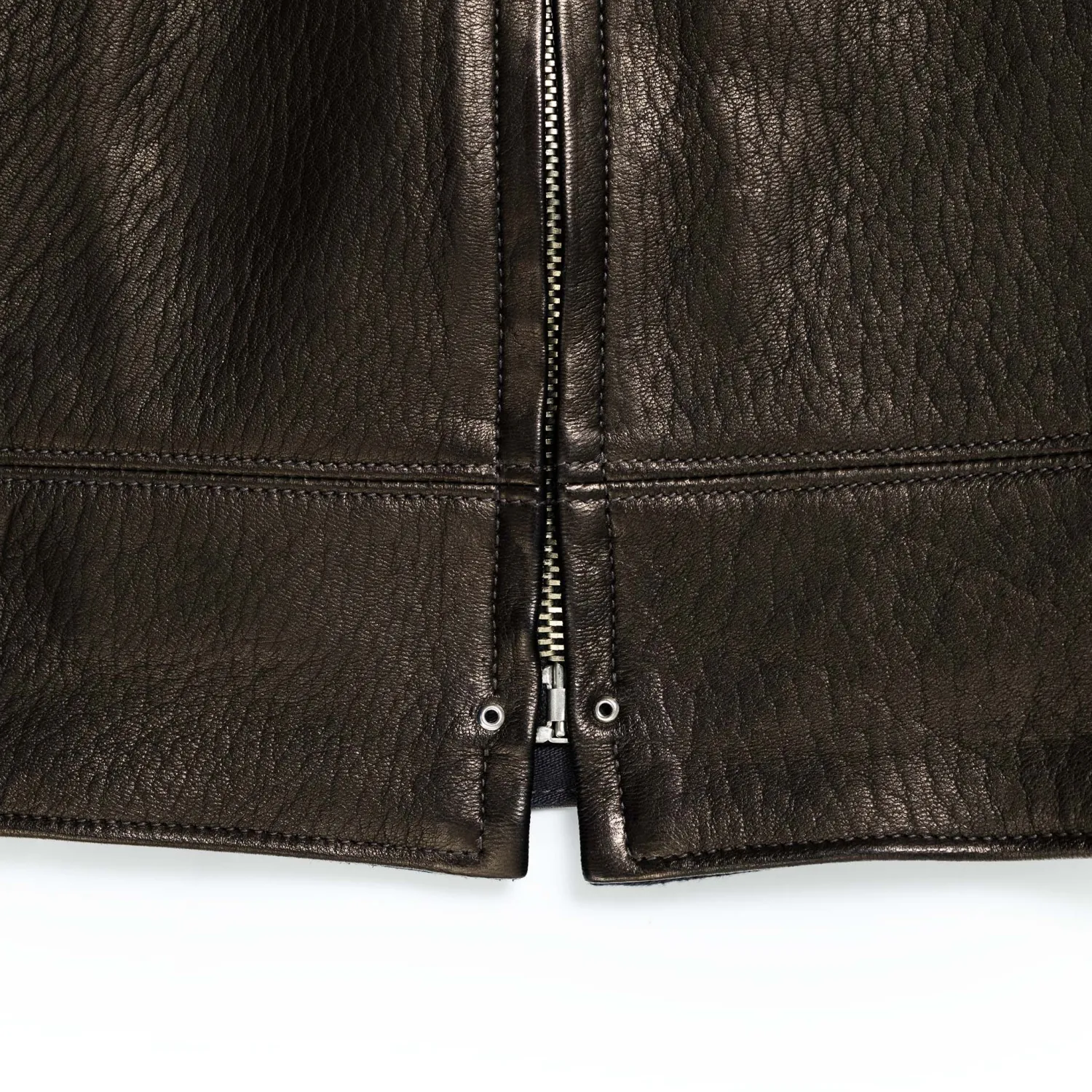 Made in their leather atelier in Kobe, the Freeman uses a super-soft, supple, and comfortable black tanned Deerskin leather. It is lightweight, yet highly durable, making it the ideal companion for this jacket.