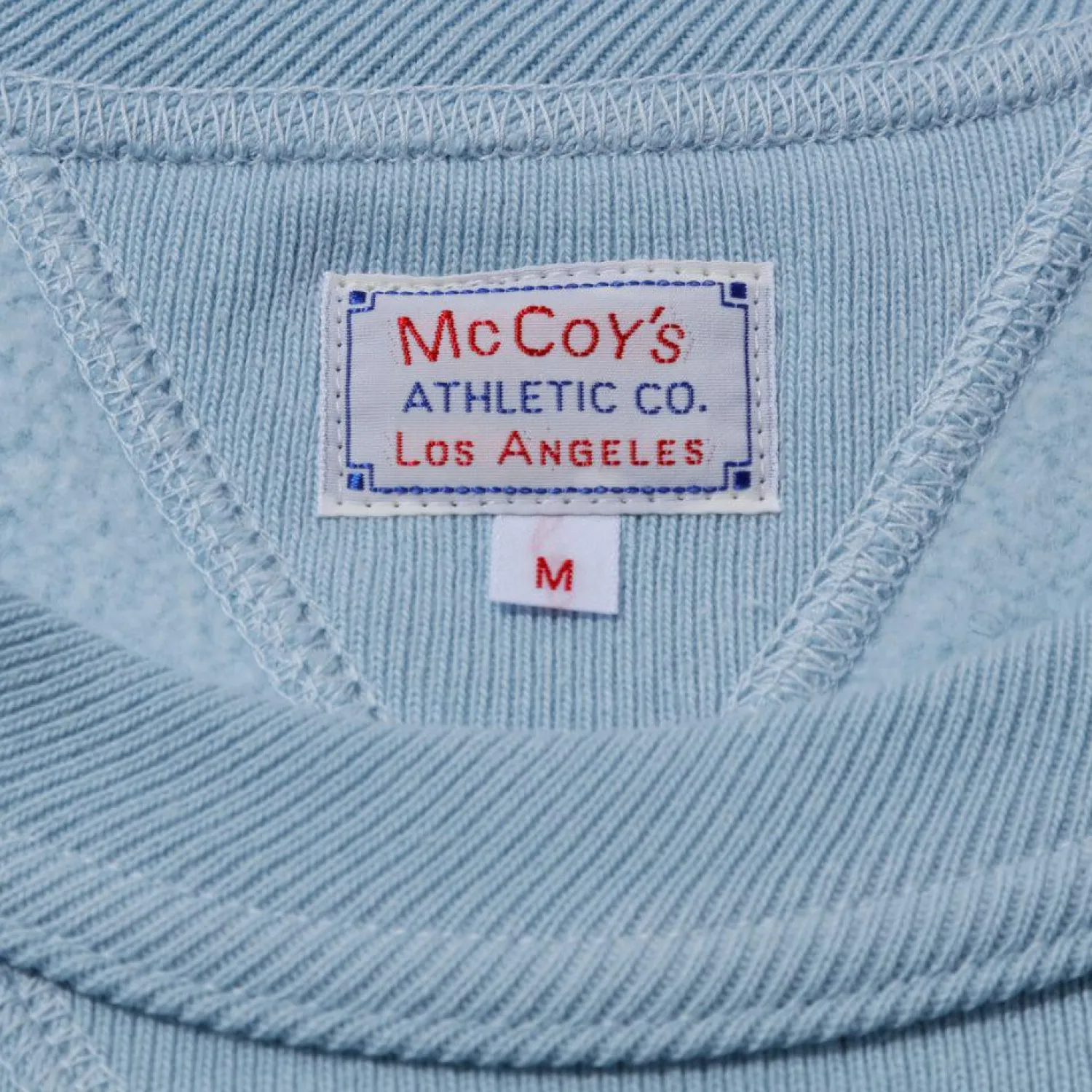 The factory that produces McCoy’s loop wheel fabric is unique in that it can only produce a limited amount of fabric a day. This, combined with the nature of the hanging knitting machines used and combination of less yarns results in the softest, lowest tension fabric, ideal for sweatshirts.